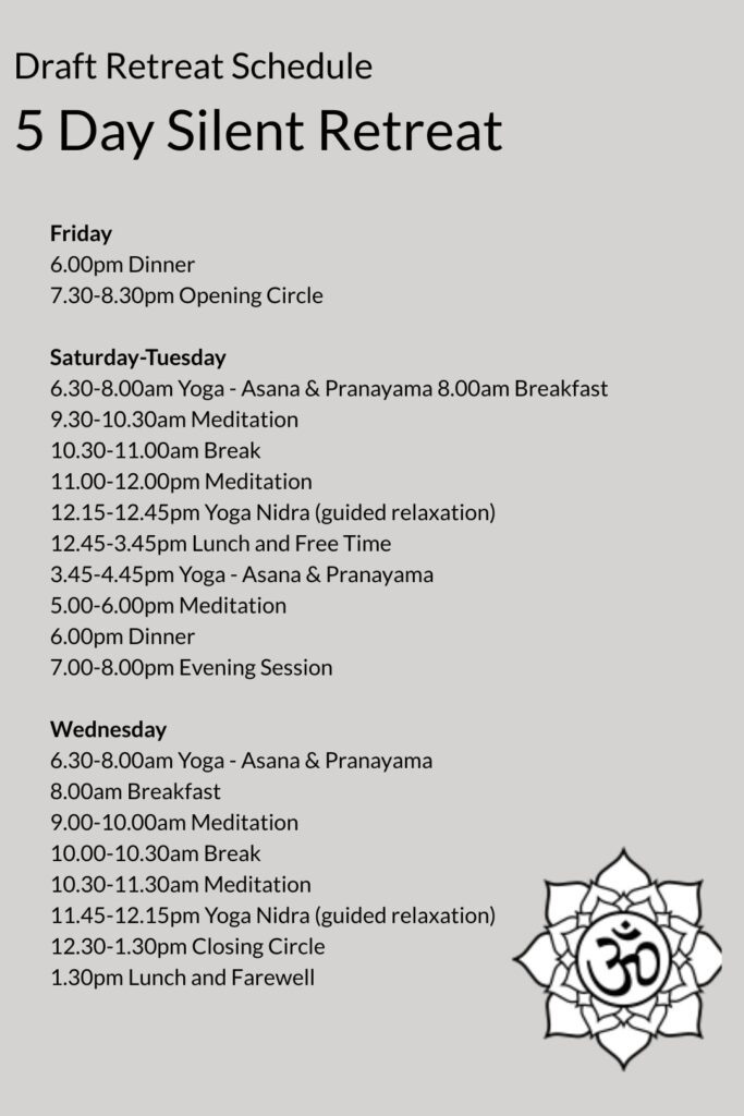 Silence will be observed from Friday until the end of the retreat. You will have opportunities to ask questions and share your experience during group discussions.