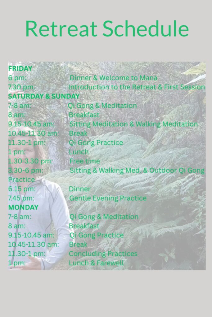 Hedwig’s Qi Gong retreat was such a precious experience – held in the beautiful surrounds of Mana, I could really sink into her teachings, practise deeply and cultivate motivation and ideas for continuing the practise at home. I wholeheartedly recommend Mana and especially the Qi Gong retreat with Hedwig.